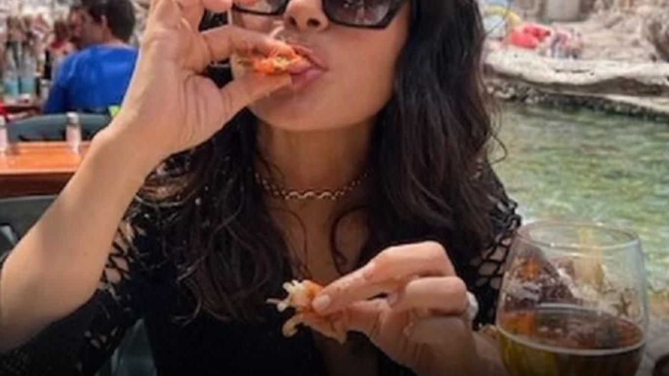 Μάλιστα απόλαυσε τη μπίρα της τρώγοντας γαρίδες και όπως βλέπετε η ευχαρίστησή της είναι μεγάλη.