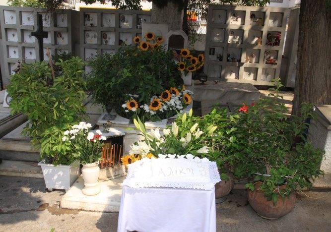 Ο τάφος την Αλίκης στο Πρώτο Νεκροταφείο Αθηνών, όπου πριν τρεις μέρες, το πρωί της Κυριακής, 17 Ιουλίου έγινε το μνημόσυνο για την αξέχαστη ηθοποιό από τον γιο της Γιάννη Παπαμιχαήλ και τον θείο του Αντώνη Βουγιουκλάκη, με λιγοστούς αγαπημένους