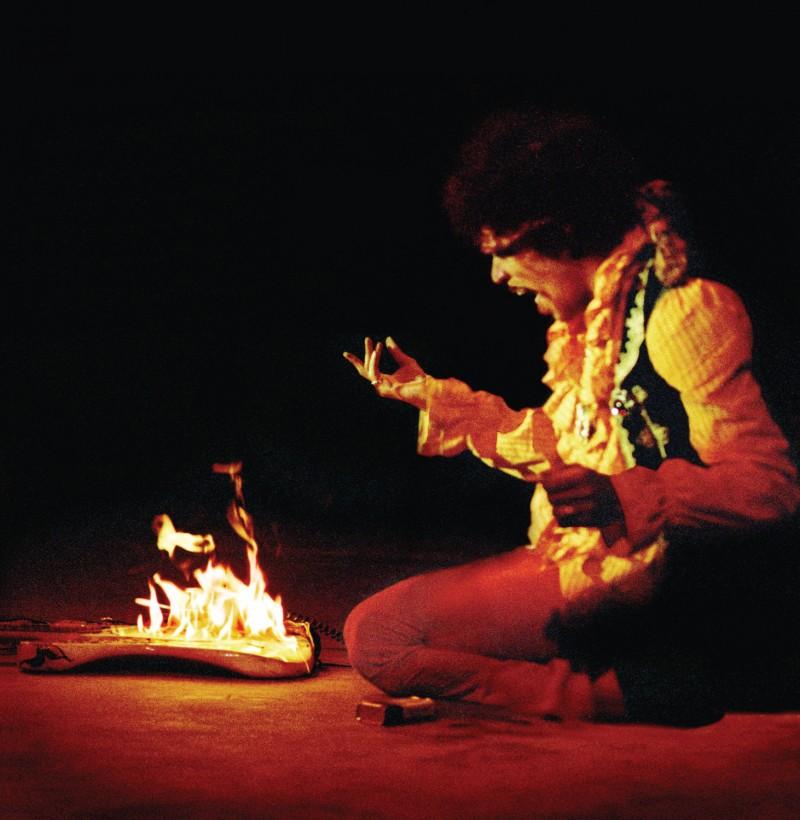 Ο Τζίμι καίει την κιθάρα του το 1967 στο Φεστιβάλ Μόντερει. Ο ίδιος δήλωσε ότι ήταν θυσία για την τέχνη και έπρεπε να το κάνει.