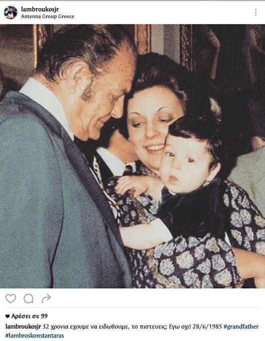 Ο Λάμπρος Junior Κωνσταντάρας, εγγονός του μεγάλου ηθοποιού και γιος του δημοσιογράφου Δημήτρη Κωνσταντάρα, τίμησε σήμερα τον παππού του, ανέβαζοντας μια πολύ γλυκιά φωτογραφία του: "32 χρόνια να ειδωθούμε το πιστεύεις; 28/6/1985".