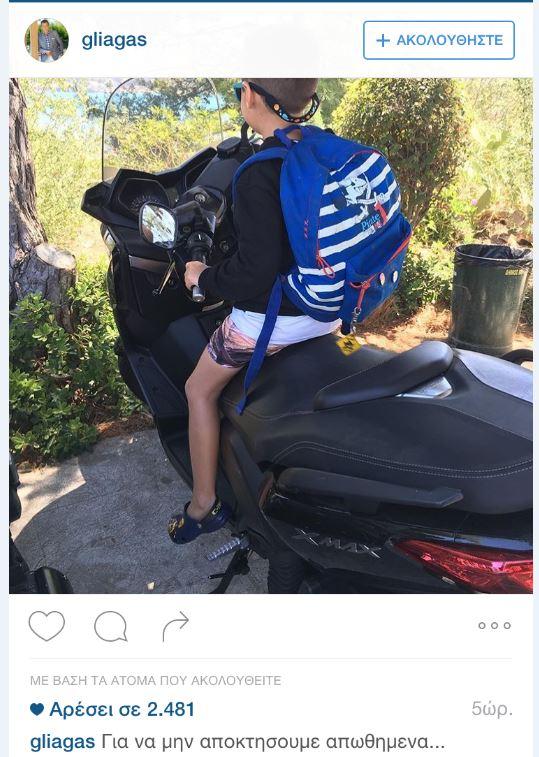 Ο Γιώργος Λιάγκας απαθανάτισε τον μεγάλο του γιο, Γιάννη, ανεβασμένο σε σταθμευμένο scooter.