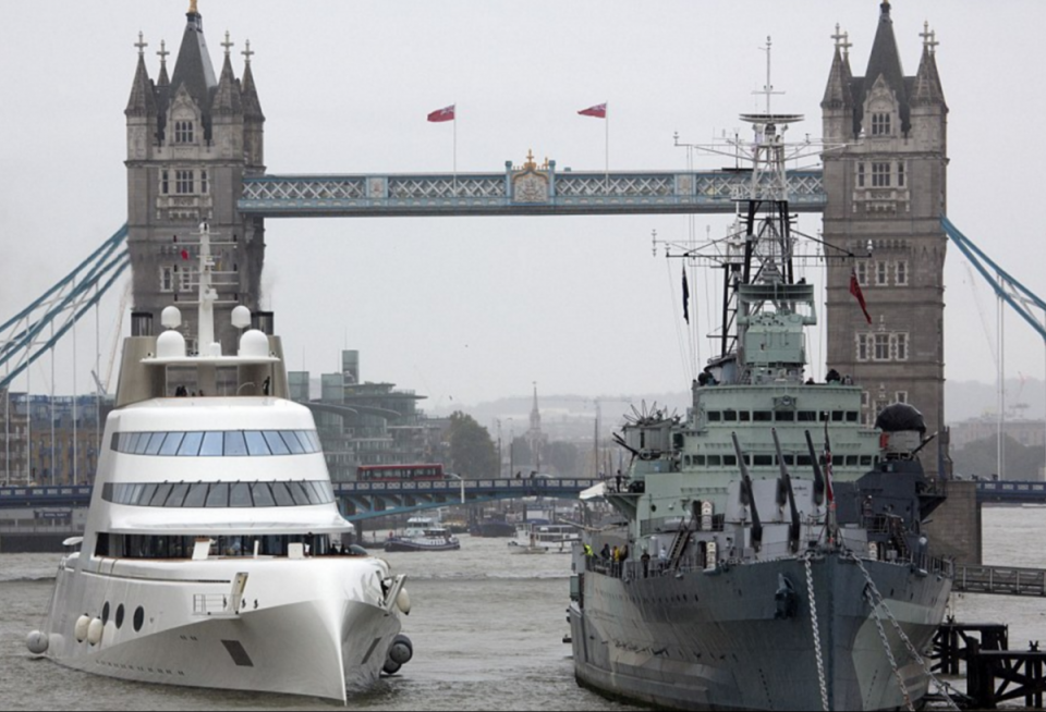 'Ενα από τα μεγαλύτερα και σίγουρα πιο πολυτελή γιοτ στον κόσμο έφτασε στο Λονδίνο και προκάλεσε πανικό στον Τάμεση, αλλά και βλέμματα θαυμασμού. Πρόκειται για το Motor Yacht A, το οποίο ανήκει στον Ρώσο δισεκατομμυριούχο Αντρέι Μελνιτσένκο και εθεάθη το σαββατοκύριακο δίπλα στο HMS Belfast, ένα ιστορικό πολεμικό πλοίο της Βρετανίας.
