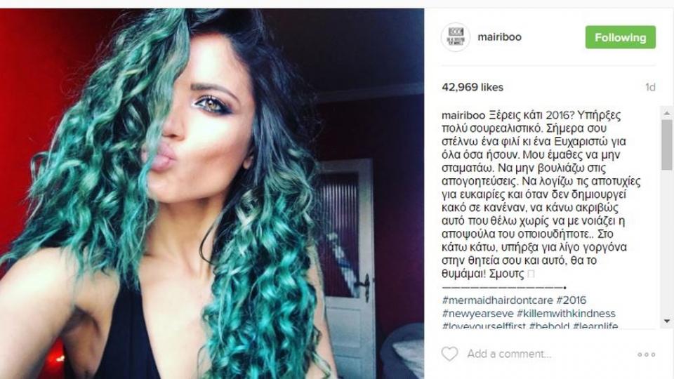 Με εκπληκτικά πρασινο-τυρκουάζ μαλλιά και αισιοδοξία η Μαίρη Συνατσάκη έκανε τον απολογισμό της για το 2016 στο Ιnstagram.