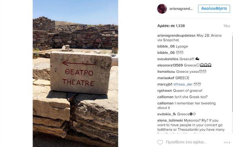Η Ariana, μάλιστα, κατά την παραμονή της στο νησί, ξεναγήθηκε στον αρχαιολογικό χώρο της Δήλου και δεν σταμάτησε να ανεβάζει στο Instagram φωτογραφίες.