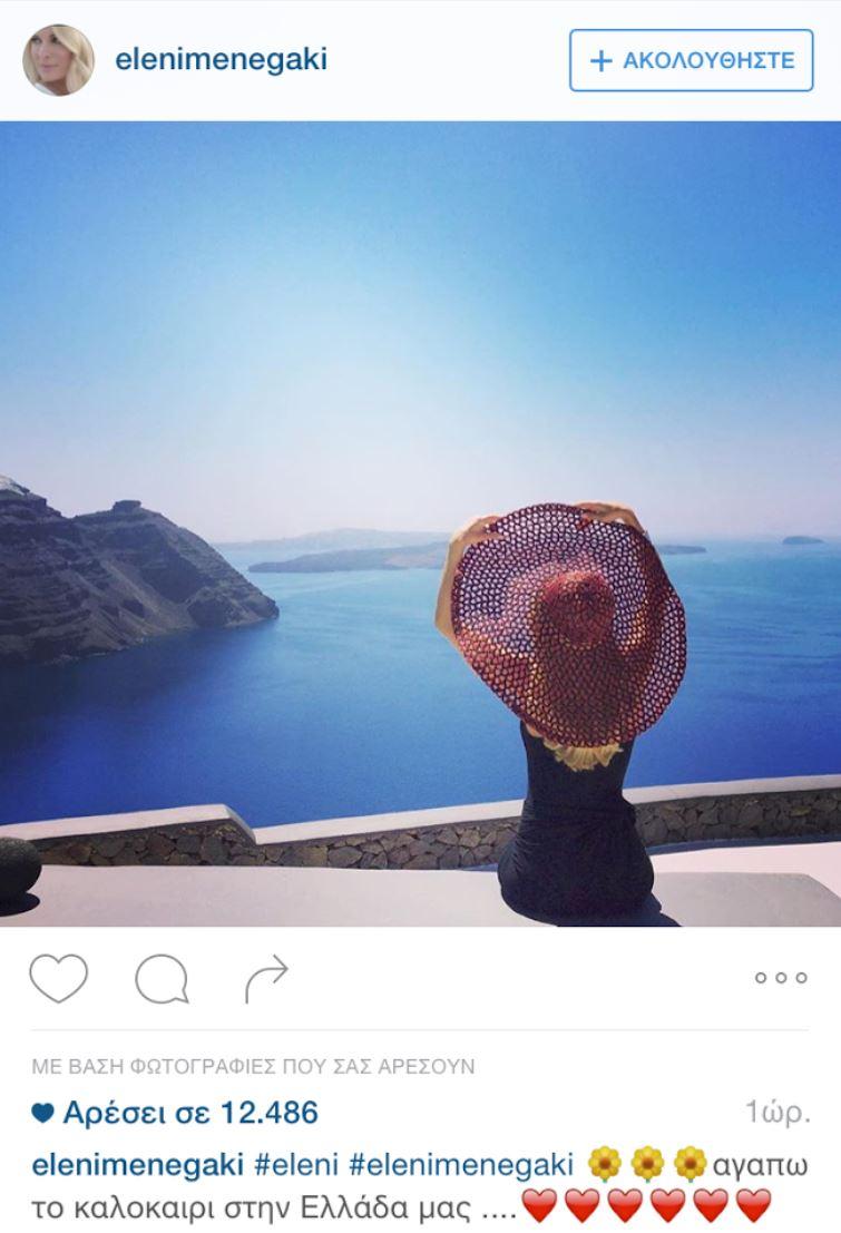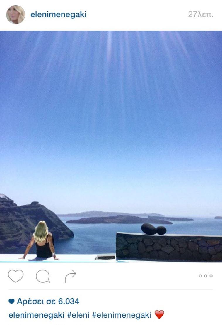 Στη Σαντορίνη η Μενεγάκη - Αγναντεύει το απέραντο γαλάζιο (ΦΩΤΟ)