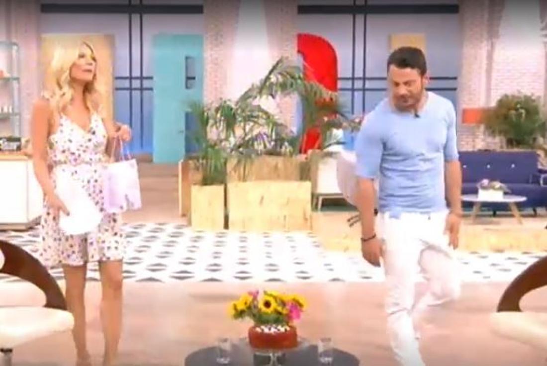 Τι δώρο πήγε ο Ντάνος στην παρουσιάστρια; Ήταν μια σακούλα γεμάτη με προϊόντα γνωστής εταιρείας αρωμάτων.