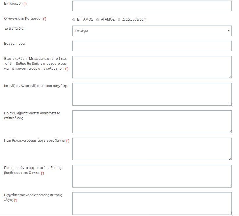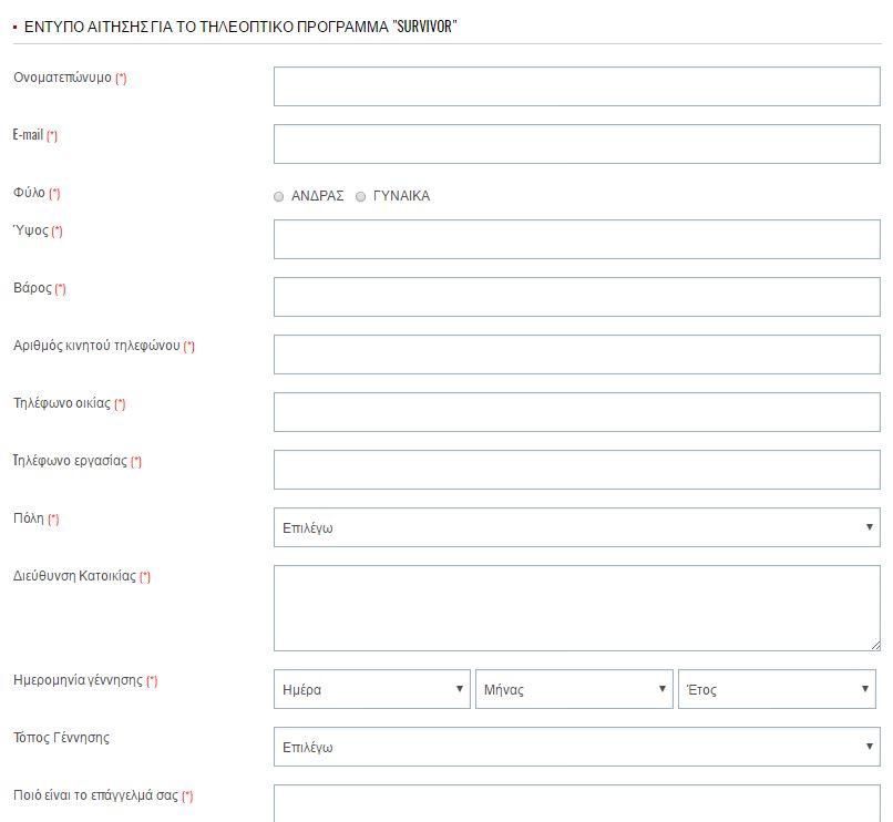 Δείτε παρακάτω την φόρμα που πρέπει να συμπληρώσει κάποιος για να μπει στα κάστινγκ του reality επιβίωσης: