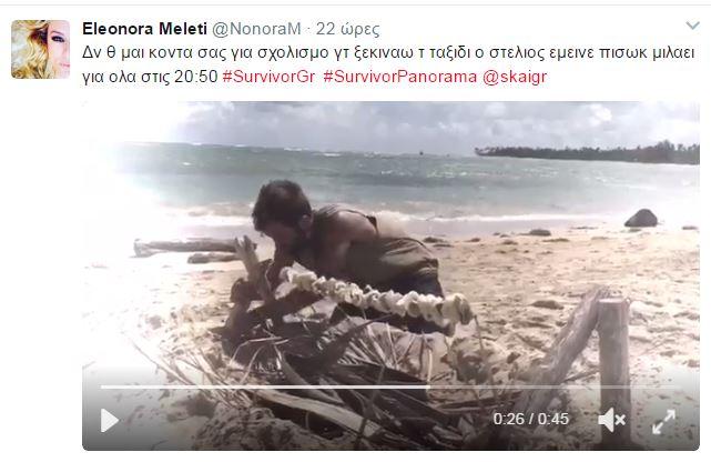 «Δεν θα είμαι κοντα σας για σχολισμο γιατί ξεκιναω το ταξιδι ο Στελιος εμεινε πισω και μιλαει για ολα στις 20:50 #SurvivorGr #SurvivorPanorama»!