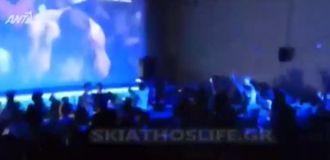 Οι Σκιαθίτες είναι συγκεντρωθεί σε έναν θερινό κινηματογράφο για να δουν τον τελικό και με το άκουσμα της πρόκρισης ξέσπασαν σε πανηγυρισμούς.