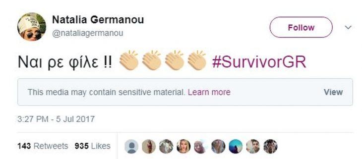 Ναταλία Γερμανού:«Ναι ρε φίλε !! ???????? #SurvivorGR»!