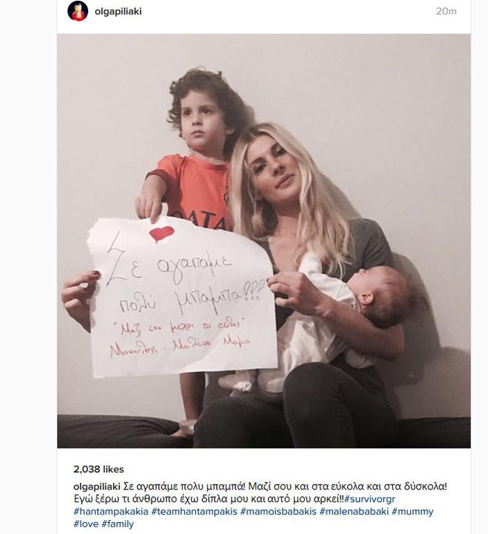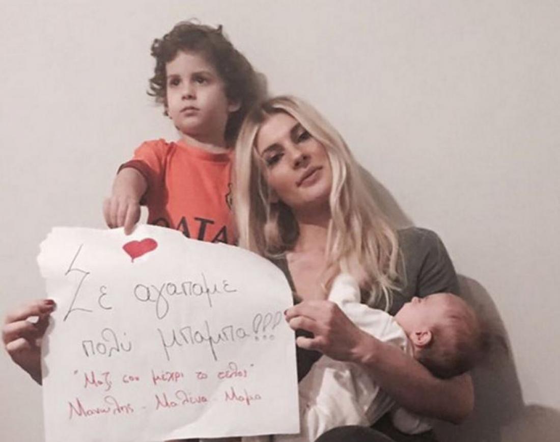 Ποζάροντας με τα δυο παιδιά της έγραψε: "Σε αγαπάμε πολύ μπαμπά! Μαζί σου και στα εύκολα και στα δύσκολα! Εγώ ξέρω τι άνθρωπο έχω δίπλα μου και αυτό μου αρκεί!! ".