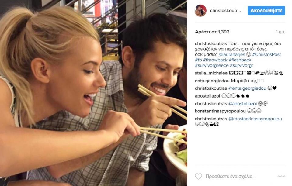 Πριν λίγες ώρες, ο Χρήστος Κούτρας ανέβασε στον προσωπικό του λογαριασμό στο Instagram, μια φωτογραφία με την Λάουρα να τρώνε μαζί!