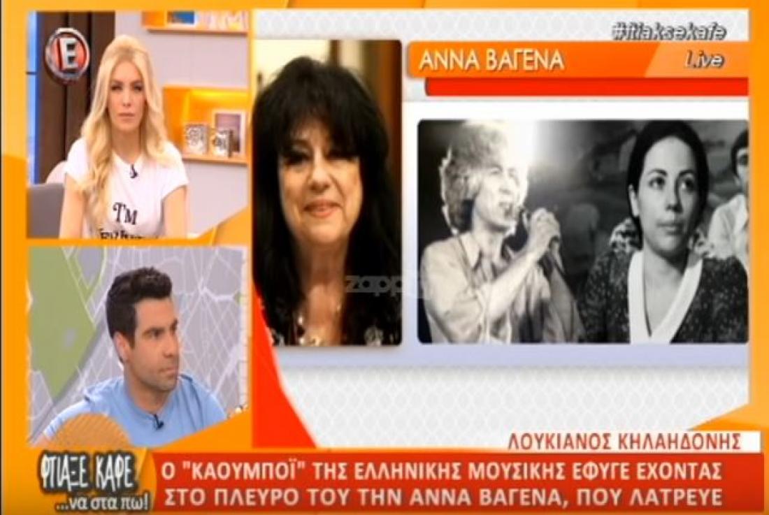 Τα ξημερώματα της Τρίτης έφυγε από τη ζωή ο σπουδαίος μουσικοσυνθέτης Λουκιανός Κηλαηδόνης . Η Άννα Βαγενά συντετριμμένη και φειδωλή μιλά στην εκπομπή "Φτιάξε Καφέ να στα Πω".