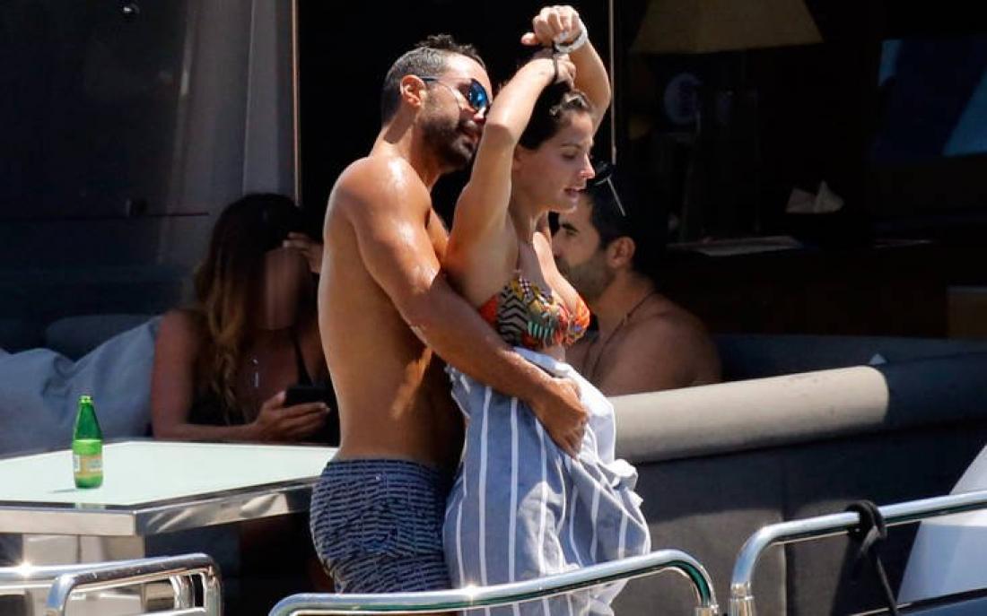 Ο φωτογραφικός φακός εντόπισε τον Σάκη Τανιμανίδη και την Χριστίνα Μπόμπα στη Μύκονο να κάνουν τις βουτιές τους πηδώντας στην θάλασσα από το σκάφος της κουμπάρας τους, Μαρίνας Βερνίκου .
