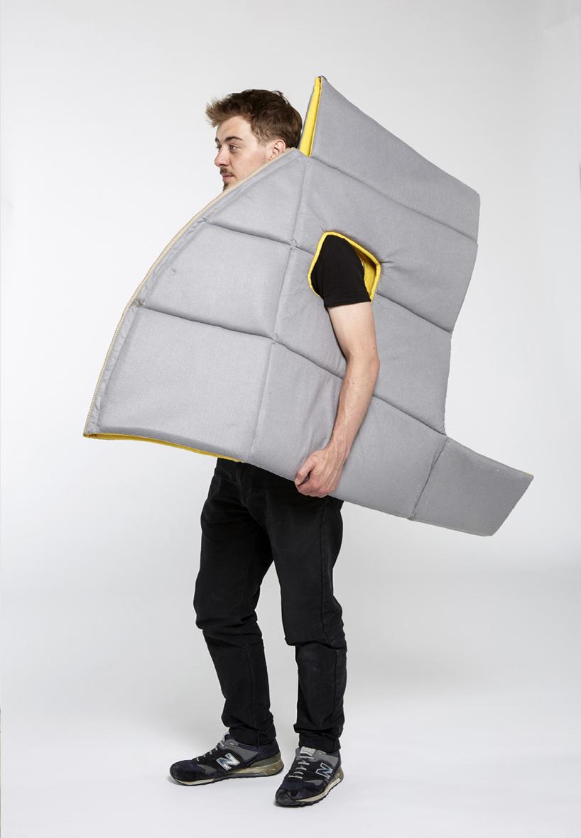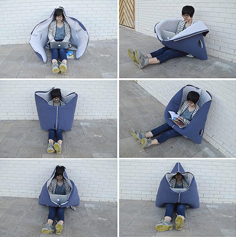 Η Yang Zhao αποφοίτησε, πέρυσι, από το Central Saint Martins. Έναν από τους ναούς του design, σήμερα, διεθνώς. Αποφάσισε να απαντήσει στην ανάγκη για ευέλικτο ιδιωτικό χώρο. Το μαλακό έπιπλο που σχεδίασε δημιουργεί, γύρω από το χρήστη, ένα περιβάλλον, ολοδικό του, είτε αυτός κάθεται είτε είναι ξαπλωμένος. Ακόμη και όταν είναι όρθιος. Ο χρήστης μπορεί να το αναδιατάξει, να το «μεταμορφώσει», για να εξασφαλίσει απόλυτη απομόνωση. Ή πλήρη έκθεση.