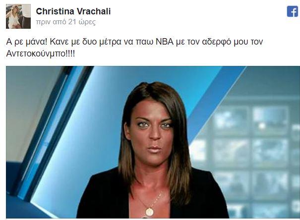 Πιο συγκεκριμένα πόσταρε μια φωτογραφία με την εικόνα της στο δελτίο και έγραψε: Α ρε μάνα! Κανε με δυο μέτρα να παω ΝΒΑ με τον αδερφό μου τον Αντετοκούνμπο! »