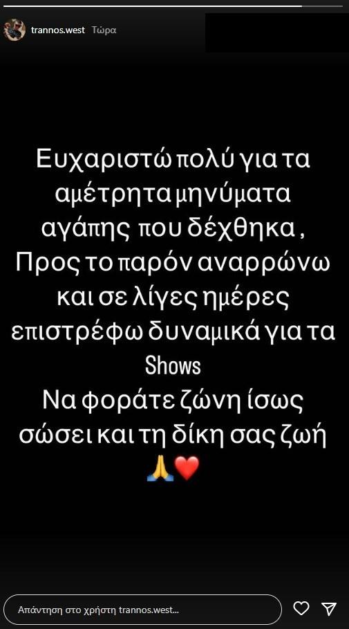 Trannos: Η πρώτη ανάρτηση και το μήνυμά του μετά το τροχαίο