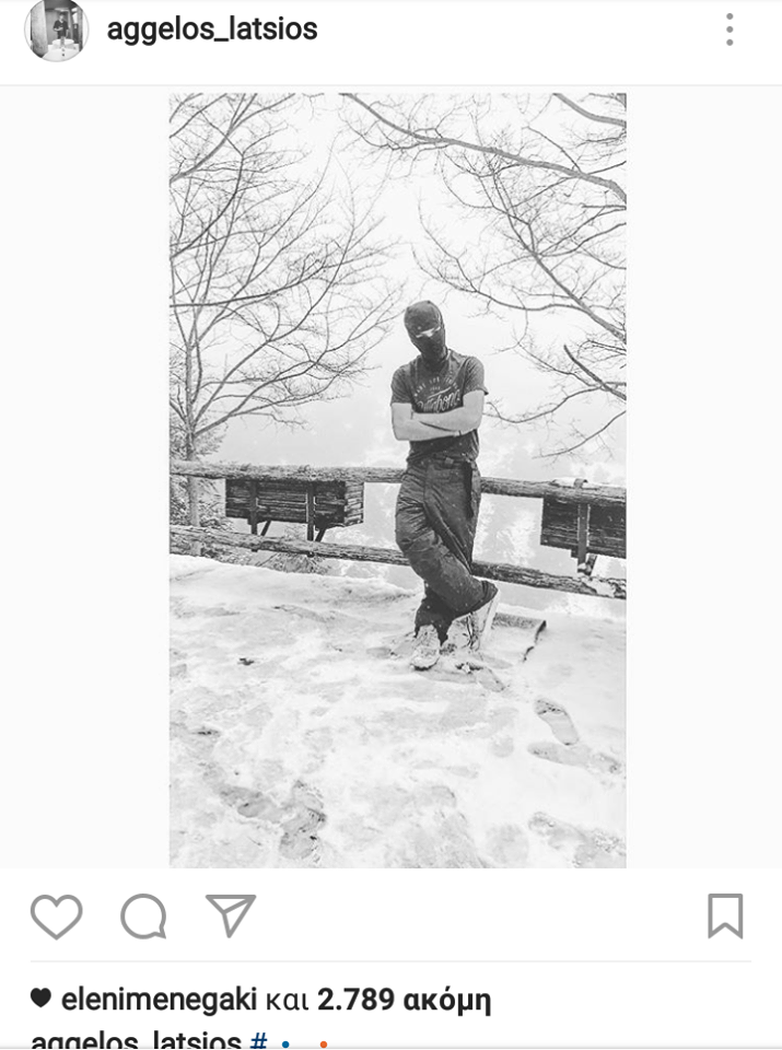 O Άγγελος βρίσκεται στα χιόνια απλώς με ένα κοντομάνικο, με την Ελένη Μενεγάκη να σχολιάζει «Βάλε μπουφάν θα παγώσεις» και τον γιο της να απαντά: «Α ρε ελληνίδα μάνα, σαν εσάς τίποτα».