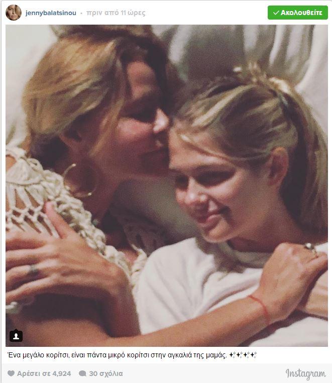 Μαμά και κόρη αγκαλιασμένες, χαμογελούν η μία στην άλλη. «'Ενα μεγάλο κορίτσι, είναι πάντα μικρό κορίτσι στην αγκαλιά της μαμάς!», έγραψε η Τζένη Μπαλατσινού.