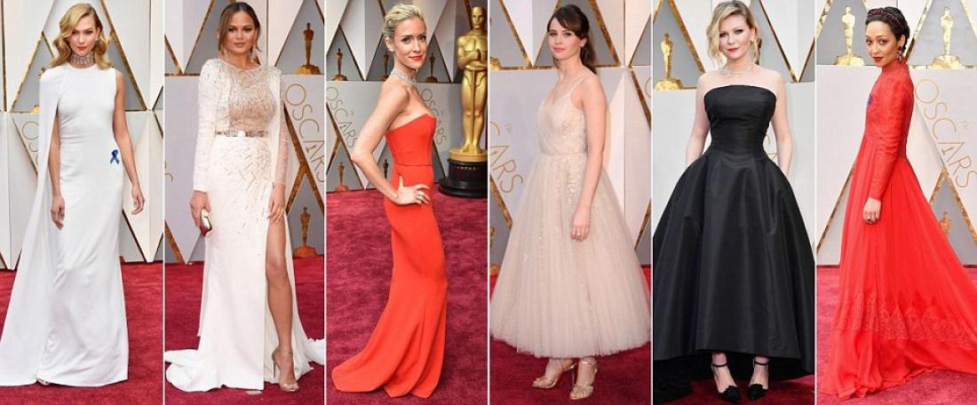 Μήπως το χρυσό αγαλματάκι επηρέασε τις διάσημες ηθοποιούς και οι περισσότερες επέλεξαν χρυσό για τις φετινές εμφανίσεις τους στα 89α βραβεία 'Οσκαρ; Βέβαια δεν έλειπε το άσπρο και φυσικά το κόκκινο, δημιουργώντας αντιθέσεις.