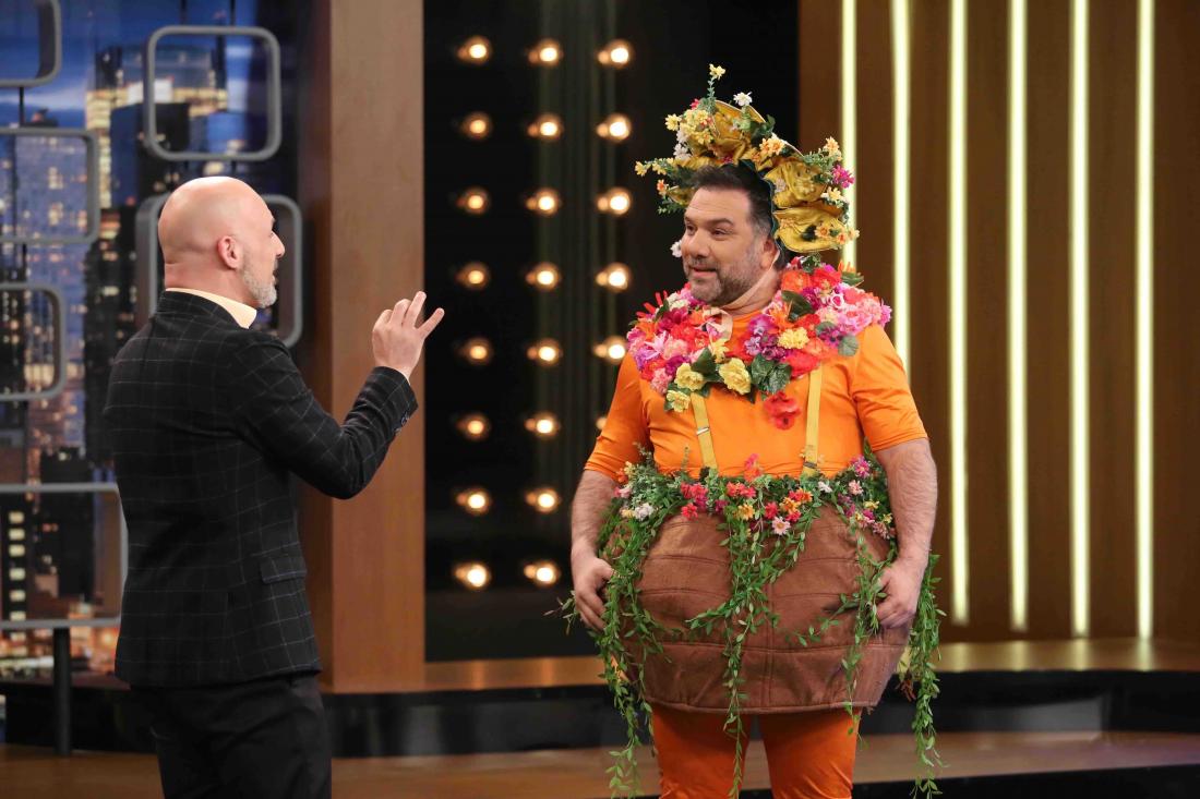 Τέλος, στην «παρέα» του «The 2night Show» έρχεται ο Νίκος Μουτσινάς και μιλάει για την επιτυχία του φέτος στην τηλεόραση και το θέατρο ενώ συζητάει για την απώλεια της μητέρας του και εξηγεί πόσο πολύ τον έχει αλλάξει ως άνθρωπο. Ωστόσο, κατά τη διάρκεια της συνέντευξης θα εισβάλει στο πλατό ένας ελέφαντας. Πώς θα αντιδράσει ο Νίκος Μουτσινάς; Ποιος κρύβεται κάτω από τη στολή; Το μόνο σίγουρο είναι ότι τον περιμένουν ακόμα πολλές, πολλές εκπλήξεις. Μία εξ αυτών η συνάντησή του με τις «Μύγες». Μία αδιάκριτη ερώτηση θα ανάψει τα αίματα για τα καλά.