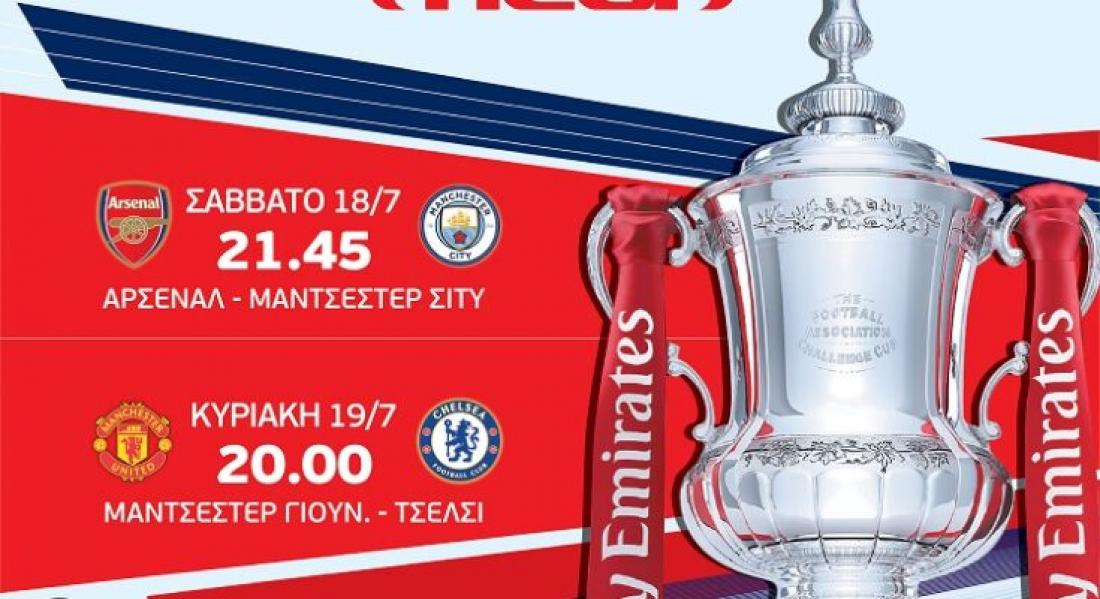 Στη τελική ευθεία για τον τελικό του Κυπέλλου Αγγλίας και το MEGA μεταδίδει ζωντανά και αποκλειστικά δύο κορυφαίους αγώνες. Τέσσερις σπουδαίες ομάδες του αγγλικού ποδοσφαίρου, η Άρσεναλ, η Μάντσεστερ Σίτυ, η Μάντσεστερ Γιουνάιτεντ και η Τσέλσι διεκδικούν στο θρυλικό Ουέμπλεϊ, τα δύο εισιτήρια του μεγάλου τελικού της 1ης Αυγούστου.