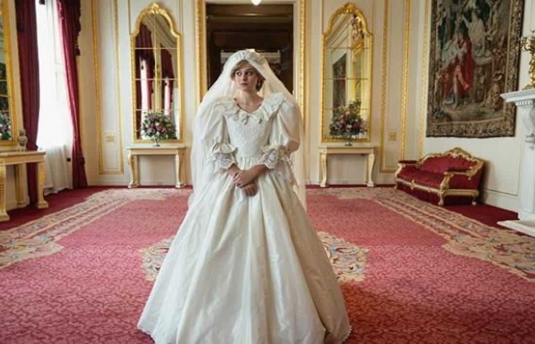 A first glimpse of Princess Diana’s wedding dress. Emmy award-winning costume designer Amy Roberts wanted to capture the same spirit and style of David & Elizabeth Emanuel’s original design, without creating a replica for Emma Corrin.