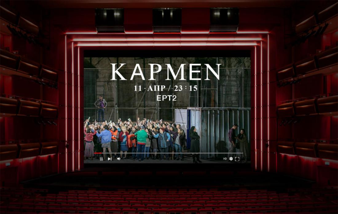 Με μια από τις δημοφιλέστερες όπερες του ρεπερτορίου –σύμβολο του έρωτα και της ελευθερίας– εγκαινιάζει η ΕΛΣ τον κύκλο των μαγνητοσκοπημένων μεταδόσεών της από τη Δημόσια Τηλεόραση. Η Κάρμεν του Ζωρζ Μπιζέ εξακολουθεί να προκαλεί σήμερα όπως και όταν πρωτοπαρουσιάστηκε, πριν από 145 χρόνια στο Παρίσι. Η Κάρμεν υπερασπίζεται την ελευθερία της και το δικαίωμα να επιλέγει η ίδια ερωτικούς συντρόφους, όχι να την επιλέγουν αυτοί. Αποτελεί απειλή για κοινωνίες ανδροκρατούμενες και πατριαρχικές. Οι επιλογές της απειλούν τα θεμέλιά τους. Μόνη λύση η εξόντωσή της. Την αναλαμβάνει ο ερωτευμένος και «προδομένος» Δον Χοσέ.