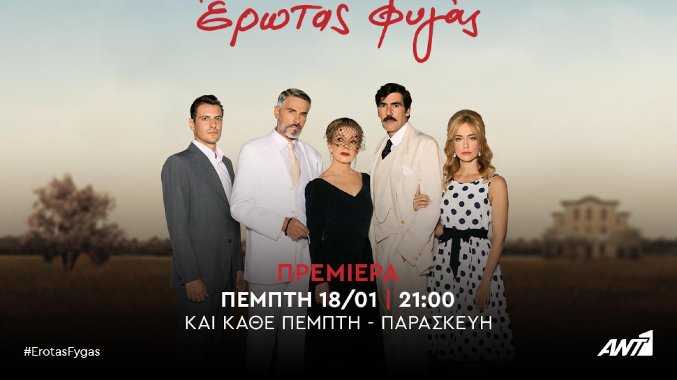 Με πλούσια πλοκή, εξαιρετικό cast και σημαντικούς συντελεστές, ο «Έρωτας Φυγάς» έρχεται την Πέμπτη 18 Ιανουαρίου στις 21:00, για να συνεχίσει την επιτυχημένη του πορεία και να καθηλώσει τους τηλεθεατές.