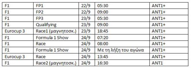 ΑΝΑΛΥΤΙΚΑ ΟΙ ΜΕΤΑΔΟΣΕΙΣ ΚΑΙ ΕΚΠΟΜΠΕΣ ΤΟΥ 16ου GRAND PRIX ΣΕ ΑΝΤ1 ΚΑΙ ΑΝΤ1+