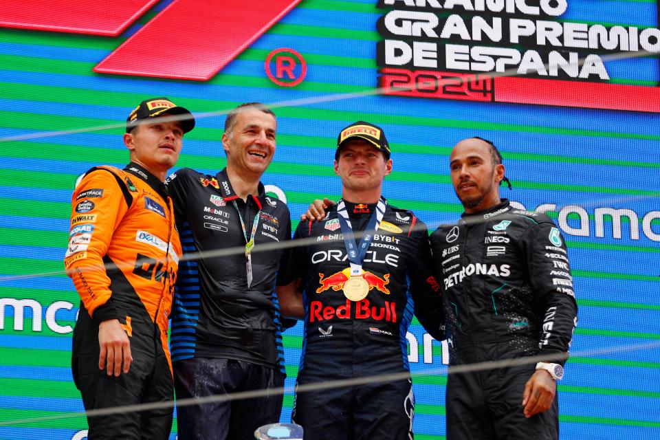 Η Formula 1 συνεχίζεται χωρίς διακοπή και χωρίς ανάσα, με 5 αγώνες σε 6 Σαββατοκύριακα. Την προηγούμενη Κυριακή, 23 Ιουνίου, είχαμε μια συναρπαστική μάχη στο ισπανικό Grand Prix. Ο Μαξ Φερστάπεν επιβεβαίωσε για άλλη μια φορά, την κυριαρχία του, στον 10ο γύρο του πρωταθλήματος. Ο οδηγός της Red Bull, πέτυχε μια σημαντική νίκη μετά από φοβερές μονομαχίες, με τον Τζορτζ Ράσελ και τον Λάντο Νόρις. Ο πρωταθλητής έκανε εξαιρετική διαχείριση των ελαστικών, καθ' όλη τη διάρκεια του αγώνα. Στο βάθρο βρέθηκαν οι τρεις πρώτοι στην εκκίνηση. Ο Νόρις δοκίμασε μια διαφορετική στρατηγική από τον Φερστάπεν, καθώς ο Ολλανδός τον προσπέρασε στην εκκίνηση. Επιμήκυνε, τα δύο πρώτα μέρη αγώνα (μπήκε για αλλαγή ελαστικών οκτώ γύρους αργότερα, με τη μαλακή γόμα και τέσσερις γύρους αργότερα, με τη μέση γόμα) για να προσπαθήσει να πιάσει τον πρωτοπόρο στο τέλος, έχοντας πιο φρέσκα μαλακά ελαστικά. Αξίζει να σημειωθεί, ότι ο Φερστάπεν είχε κρατήσει νέο σετ μαλακής γόμας C3 για το τέλος, ενώ ο Νόρις είχε χρησιμοποιήσει τα δικά του καινούργια λάστιχα στην εκκίνηση. Ο Χάμιλτον τερμάτισε τρίτος, επιστρέφοντας στο βάθρο για πρώτη φορά από το Μεξικάνικο Grand Prix του 2023. Από το ντεμπούτο του το 2007, για 18 συνεχόμενες σεζόν, ο 7 φορές παγκόσμιος πρωταθλητής έχει καταφέρει να τερματίσει στην πρώτη τριάδα, τουλάχιστον μία φορά. Ήταν η 61η νίκη του Φερστάπεν και η 4η σε αυτή την πίστα, όπου πριν από οκτώ χρόνια πήρε την παρθενική του νίκη στη Formula 1. Για τη Red Bull, είναι η 120η νίκη, η 7η στους 10 αγώνες αυτής της σεζόν.