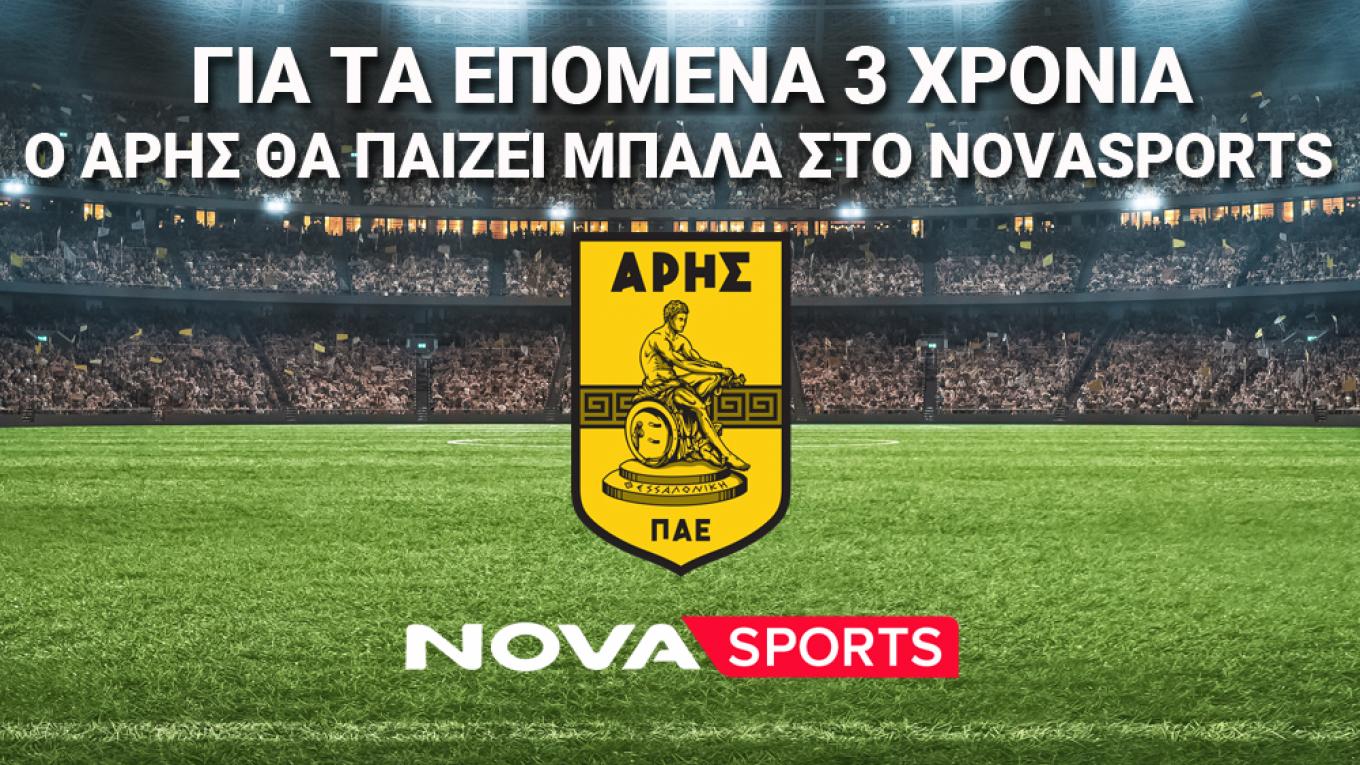Η Nova, μέσα από την ανανέωση της συνεργασίας της με μία από τις κορυφαίες ομάδες της Ελλάδας, την ΠΑΕ Άρης, εμπλουτίζει ακόμη περισσότερο το premium αθλητικό περιεχόμενό της. Έτσι, οι συνδρομητές Nova – Wind, θα απολαύσουν μια μοναδική σεζόν με περισσότερους από 3.500 LIVE αγώνες, απολαμβάνοντας παρέα με την καλύτερη δημοσιογραφική ομάδα στο «γήπεδο» του Novasports: