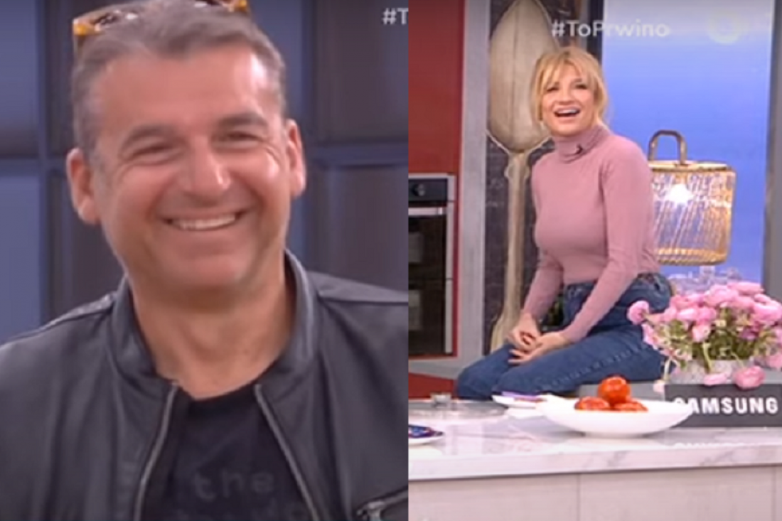Συγκεκριμένα, λίγο πριν ολοκληρωθεί η εκπομπή, η παρουσιάστρια που βρισκόταν στην κουζίνα, είδε τον Γιώργο Λιάγκα και ξεκίνησε να τον πειράζει.
