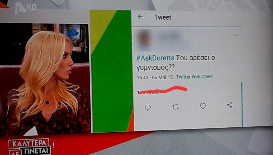 Σε κάθε περίπτωση αρκετά ήταν τα tweets με τις ερωτήσεις στην Ντορέττα αλλά και τα tweets που κάνουν πλάκα με την γκάφα της εκπομπής