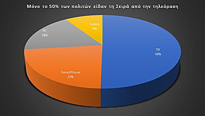 Εξίσου εντυπωσιακό, όμως, είναι ότι το 50% των θεάσεων δεν έγιναν μέσω τηλεόρασης, αλλά από άλλες συσκευές (υπολογιστές, τάμπλετ, κινητά τηλέφωνα κ.λπ.), γεγονός που επιβεβαιώνει ότι και στην Ελλάδα αρχίζει να επικρατεί, πλέον, η νέα διεθνής τάση, που θέλει τους πολίτες να επιλέγουν όχι μόνον τον χρόνο, αλλά και τον τρόπο παρακολούθησης των αγαπημένων τους προγραμμάτων. Όπως φαίνεται και από τα στοιχεία του Youbora, σχεδόν ένας στους τέσσερις πολίτες, και συγκεκριμένα το 23%, παρακολούθησαν «Το βραχιόλι της φωτιάς» από το κινητό τους τηλέφωνο!