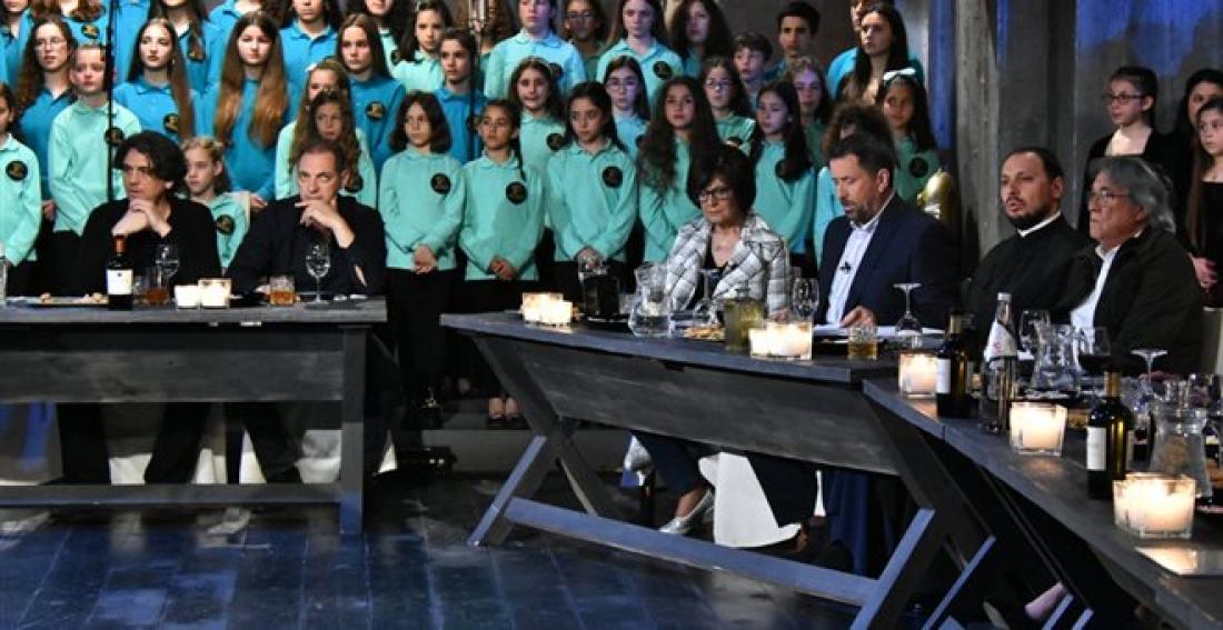 Το στούντιο γεμίζει με μέλη χορωδιών και μουσικούς της Νεανικής και Συμφωνικής Ορχήστρας της Νίνας Πατρικίδου που λειτουργεί με την στήριξη της Ιεράς Αρχιεπισκοπής Αθηνών και του Μακαριωτάτου Αρχιεπισκόπου Αθηνών και Πάσης Ελλάδας κ.Ιερώνυμου.