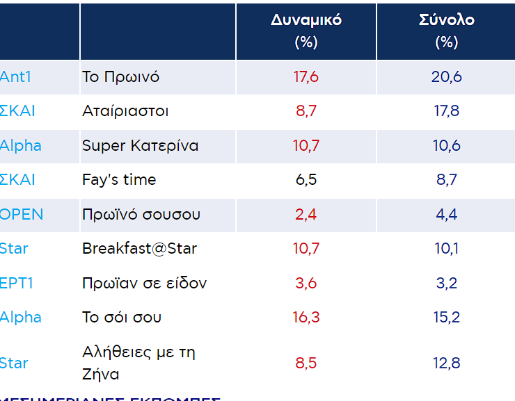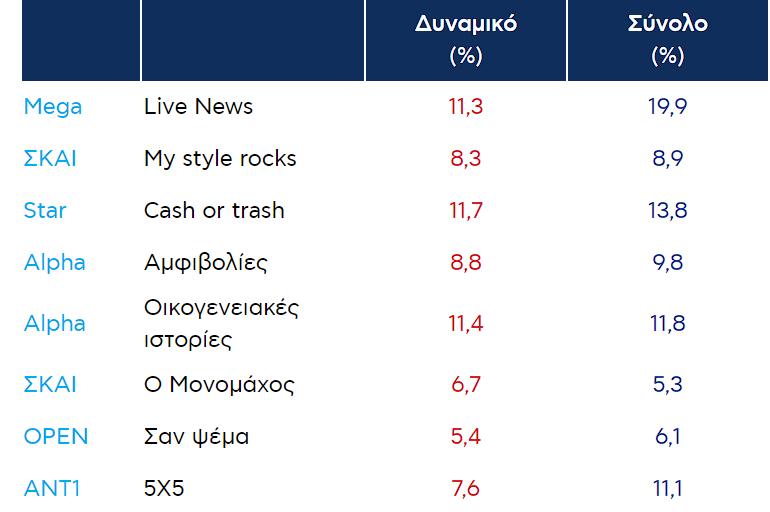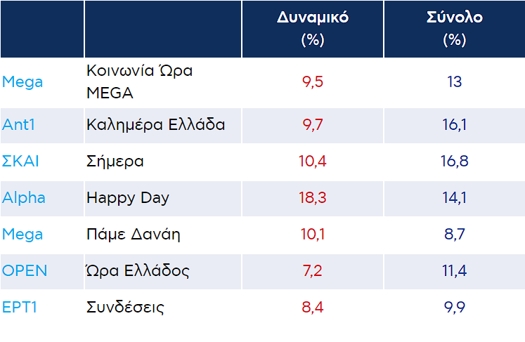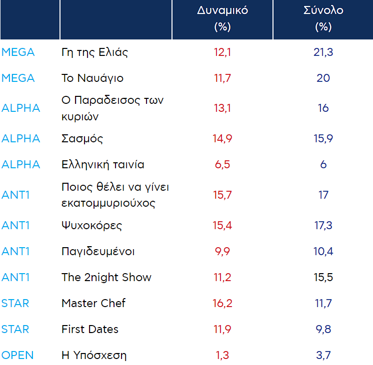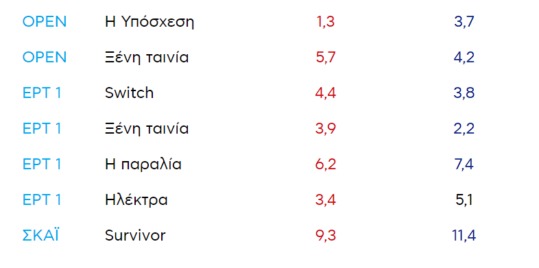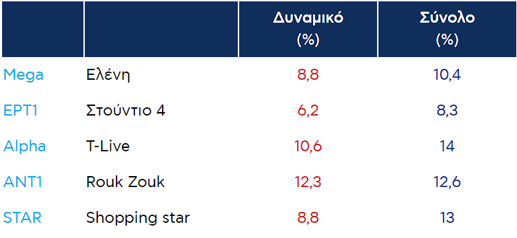 Δείτε αναλυτικά τα νούμερα τηλεθέασης των τηλεοπτικών προγραμμάτων