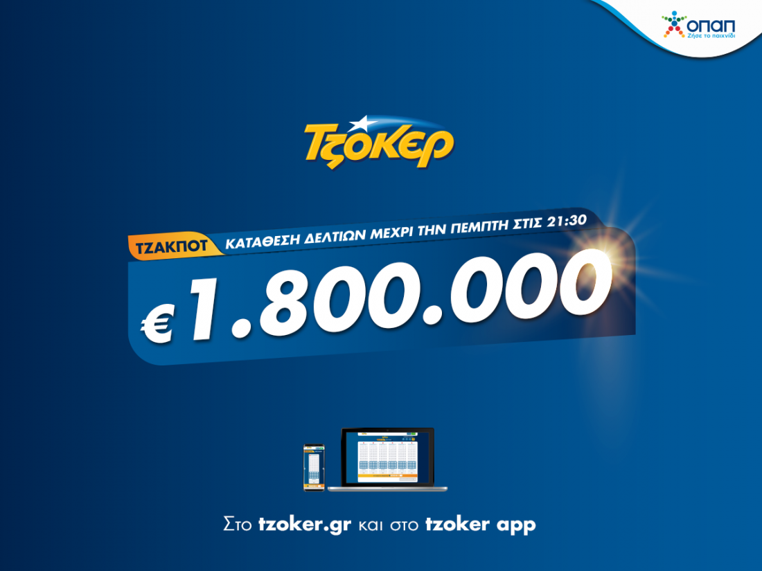 Η διαδικτυακή κατάθεση δελτίων για συμμετοχή στην αποψινή κλήρωση γίνεται μέσω του και της εφαρμογής ΤΖΟΚΕΡ και θα ολοκληρωθεί στις 21:30.