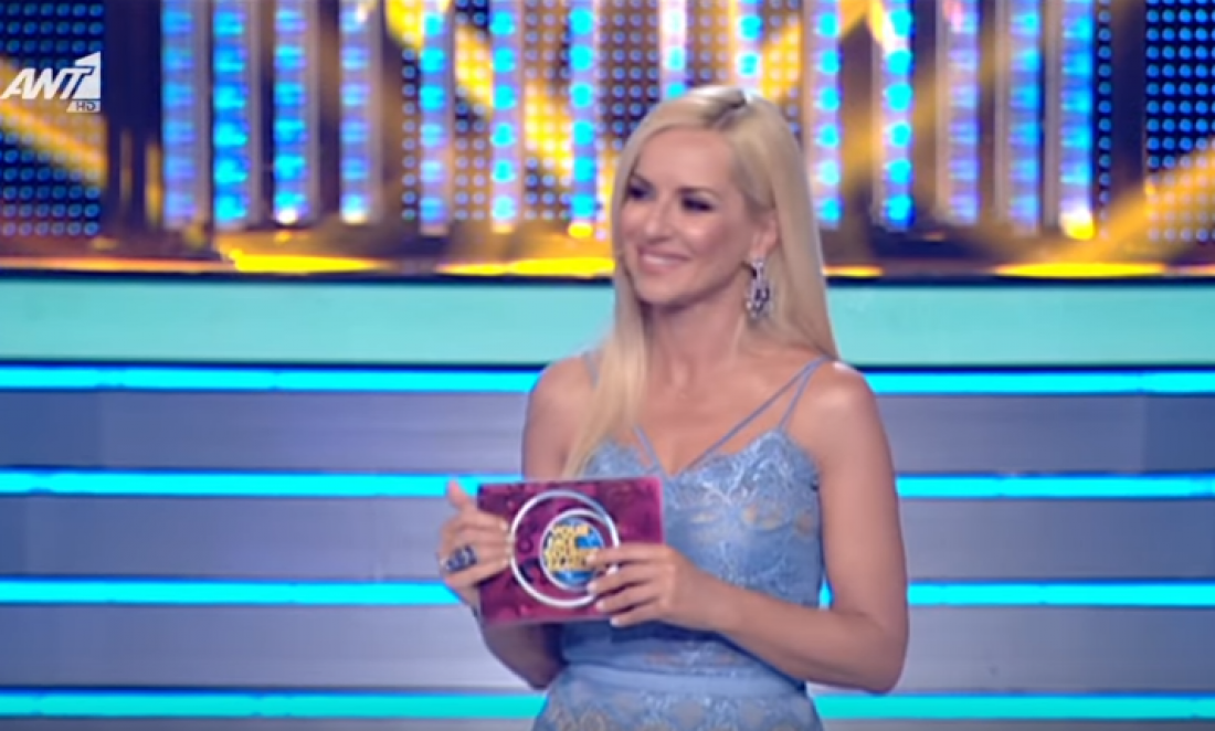 Εντυπωσιακή όμως ήταν και η αγαπημένη παρουσιάστρια, , η οποία εμφανίστηκε με μια μοναδική γαλάζια τουαλέτα και με αστείρευτο χιούμορ και ανεβασμένη διάθεση παρέσυρε τους πάντες στους ρυθμούς της.