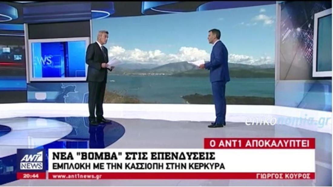 Όπως αποκάλυψε ο δημοσιογράφος Γιώργος Κούρος στο κεντρικό δελτίο ειδήσεων του ΑΝΤ1 με τον Νίκο Χατζηνικολάου, υπάρχει εμπλοκή στην επένδυση στην Κασσιόπη της Κέρκυρας.