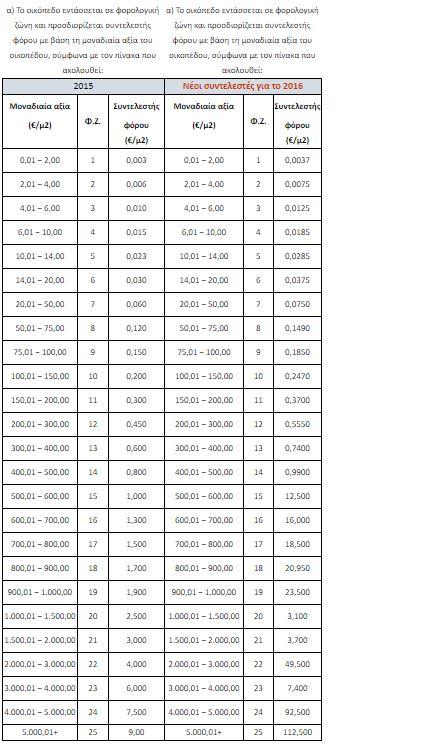 β) Αυξήθηκαν οι συντελεστές για τον υπολογισμό του συμπληρωματικού φόρου που επιβάλλεται στα φυσικά πρόσωπα επί της συνολικής αξίας των δικαιωμάτων, στην οποία πλέον συνυπολογίζεται και η αξία των δικαιωμάτων επί των γηπέδων εκτός σχεδίου πόλης ή οικισμού (με τον νόμο 4389/2016 αντικαταστάθηκε η παρ. 2 του άρθρου 5 του ν. 4223/2013).