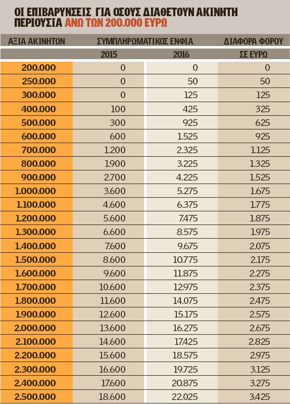 Παρά τις διορθώσεις όμως ο λογαριασμός του ΕΝΦΙΑ θα είναι βαρύτατος, ιδίως για όσους έχουν κάνει το αμάρτημα να διαθέτουν ακίνητη περιουσία άνω των 200.000 ευρώ.