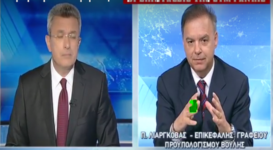 Ο επικεφαλής του Γραφείου Προϋπολογισμού του Κράτους στη Βουλή Παναγιώτης Λιαργκόβας, μιλώντας στο δελτίο ειδήσεων του ΑΝΤ1 και στον Νίκο Χατζηνικολάου, δήλωσε, μεταξύ άλλων, ότι η πραγματική οικονομία έχει υποστεί μεγάλη ζημιά και γι’ αυτό είναι καλό να μην έχουμε πρωτογενή πλεονάσματα πάνω από το 2% του ΑΕΠ.