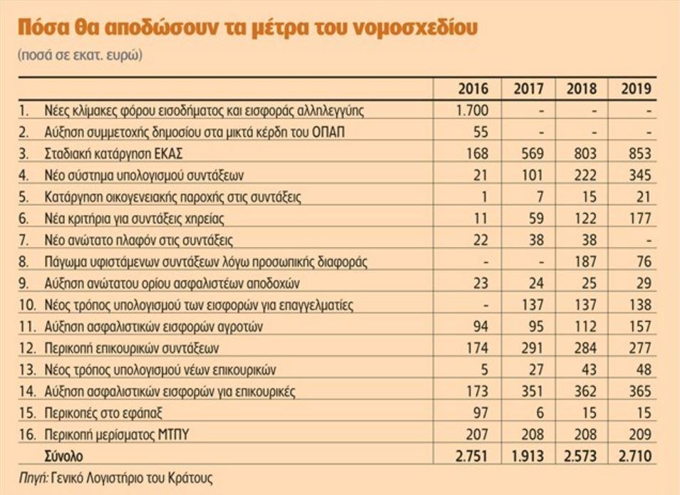 15) Από τις περικοπές στο εφάπαξ θα εξοικονομηθούν 97 εκατ. ευρώ το 2016, 6 εκατ. ευρώ το 2017, καθώς και 15 εκατ. ευρώ για καθένα από τα έτη 2018 και 2019.