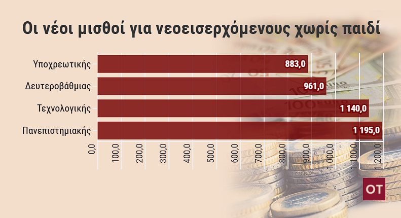 Ο μισθός ενός δημοσίου υπαλλήλου τεχνολογικής εκπαίδευσης που βρίσκεται στο 3ο κλιμάκιο με 2 παιδιά από τα 1,337 ευρώ που είναι θα πάει στα 1,370 ευρώ. Σε ένα χρόνο οι δημόσιοι υπάλληλοι θα λαμβάνουν περίπου 400 ευρώ περισσότερα ενώ το 2027 το ετήσιο όφελος θα είναι 1.200 ευρώ.