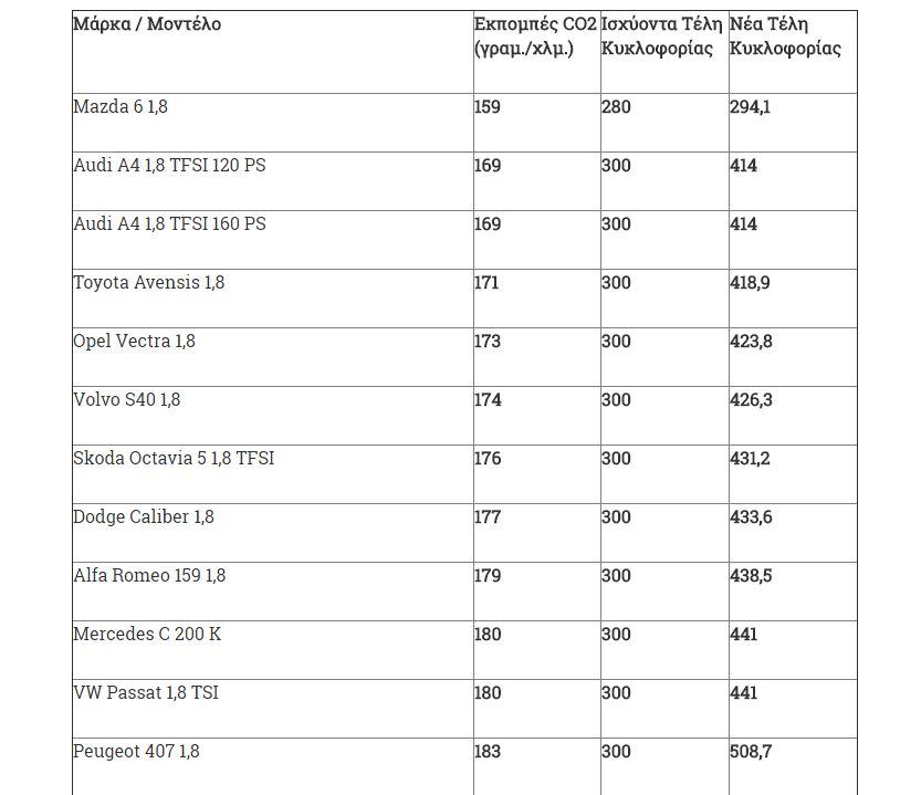Στα αυτοκίνητα με κινητήρες από 2.358 έως και 3.000 κ.εκ. τα Τέλη Κυκλοφορίας 2016 ανήλθαν μεταξύ 820 έως και 920 ευρώ. Σύμφωνα με το νέο σχέδιο τα Τέλη Κυκλοφορίας 2017 στα συγκεκριμένα ΙΧ θα κυμανθούν από 580 έως και 644 ευρώ.