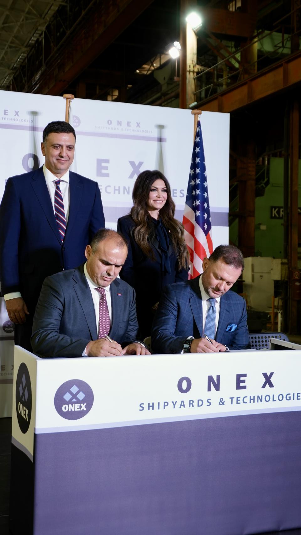 Η τελετή υπογραφής πραγματοποιήθηκε στις ναυπηγικές εγκαταστάσεις της ONEX στην Ελευσίνα, παρουσία του Υπουργού Ναυτιλίας και Νησιωτικής Πολιτικής, κ. Βασίλη Κικίλια, και της Πρέσβεως των Ηνωμένων Πολιτειών στην Αθήνα, κυρίας Kimberly Ann Guilfoyle.
