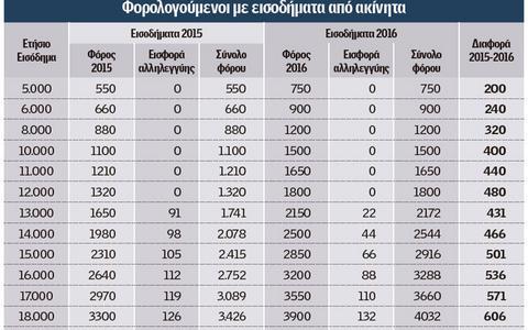 Ελεύθεροι επαγγελματίες: Τα φετινά εισοδήματα των ελεύθερων επαγγελματιών και ατομικών επιχειρήσεων που θα δηλωθούν την άνοιξη του 2017 θα φορολογηθούν με την ίδια κλίμακα που ισχύει για τους μισθωτούς με την διαφορά ότι για τους συγκεκριμένους φορολογούμενους δεν εφαρμόζεται το έμμεσο αφορολόγητο όριο. Αυτό σημαίνει ότι τα εισοδήματα των φορολογούμενων αυτών θα φορολογούνται από το πρώτο ευρώ. Ωστόσο για την πλειονότητα των ελεύθερων επαγγελματιών θα προκύψουν φοροελαφρύνσεις καθώς ο συντελεστής 26% που επιβάλλονταν στους έχοντες εισοδήματα έως 50.000 ευρώ έχει μειωθεί στο 22% για έχοντες εισοδήματα έως 20.000 ευρώ. Επιβαρύνσεις προκύπτουν για όσους έχουν μεγαλύτερα εισοδήματα πάνω από τις 35.000 ευρώ. Επιπλέον, σε όσους δηλώνουν ετήσια εισοδήματα μεγαλύτερα των 12.000 ευρώ θα επιβάλλεται η νέα αναμορφωμένη ειδική εισφορά αλληλεγγύης η οποία υπολογίζεται με συντελεστές κλιμακούμενους από 2,2% έως 10%.