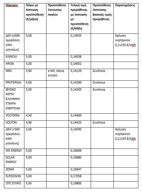 Οι τιμές για το πράσινο τιμολόγιο