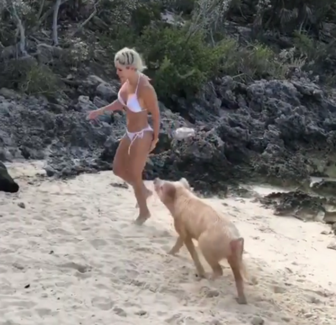 Η 32χρονη βρισκόταν σε ένα ακατοίκητο νησί στις Μπαχάμες, που έχει γίνει γνωστό για τα γουρούνια που κάνουν βουτιές στη θάλασσα.